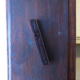 בית מזוזה עיטורי עץ מחופה עור כהה 12 ו15 ס"מ